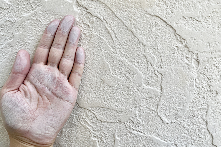 外壁を手で触ったときに白い粉がつく状態を「チョーキング現象」といいます。塗膜が劣化していることを示すサインです。