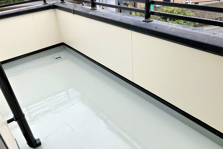 また、ベランダやバルコニーには雨水が排水口に流れるように傾斜が付けられているのですが、表面に劣化が生じ、コケなどが生えてしまうと水が流れず、溜まりやすくなります。あらためて防水工事を行い、下地から防水層を作り直すことによって、雨水が浸透しにくく、適切に排水できるようになるのです。