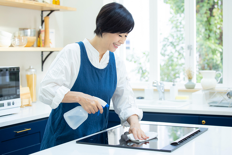 また、人造大理石製の「キレイシンク」は継ぎ目のないシームレス設計で、汚れが溜まりにくく拭き掃除が簡単。さらに、高硬度の「セラミックトップ」は傷が付きにくいだけでなく、油汚れも水拭きで落とせる点が魅力です。