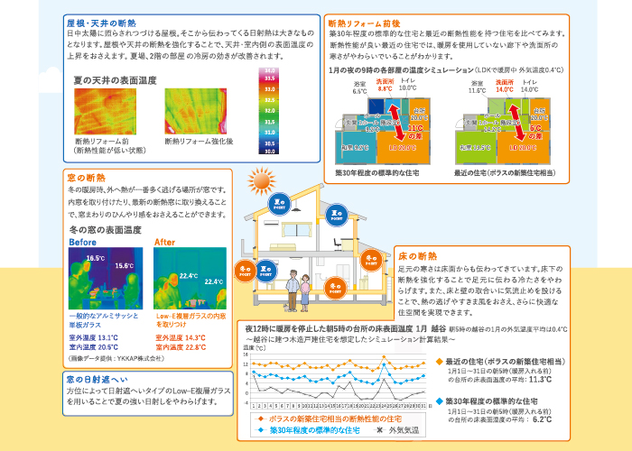 夏の暑さが厳しい近年、高齢者などが家の中で熱中症になるニュースも聞かれます。逆に冬は、居室と浴室などの温度差によるヒートショックが血圧の急激な変動を招いて健康を害することも。とくに、築年数の古い家では断熱材が入っていないことも多く、「エアコンをつけてもなかなか涼しく(暖かく)ならない」と悩んでいる人も多いのではないでしょうか。