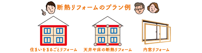 断熱リフォームというと大掛かりな工事をイメージするかもしれませんが、住まいをまるごと断熱する方法から、天井や床、窓などの部分断熱まで施工プランはさまざま。状況や予算にあわせて選ぶことができます。