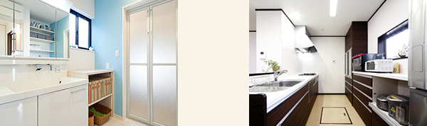 一般的に要望の多い、「入浴前後の脱衣所の寒さをなんとかしたい」といった場合も、脱衣所と浴室は一体的に計画されるべき場所。在来工法の浴室であれば、断熱性能の高いユニットバスに替える選択も。浴室暖房乾燥機の設置で、入浴前の水まわりも暖められます。
