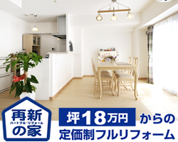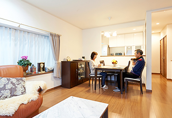 そこで、ここからはポラスの事例をもとにシニア世代にも選ばれるリフォームプランを紹介します。『再新の家』は家をまるごとフルリフォームできるパッケージプランが特徴。坪単価18万円からの定価制なので、家の広さがわかればおおよその費用がわかります。プラン内容は住宅診断から内外装と設備のリフレッシュ、耐震補強、防蟻処理までカバー。別途で間取りの変更や増築にも対応し、要望に応じて二世帯リフォームも実現できます。