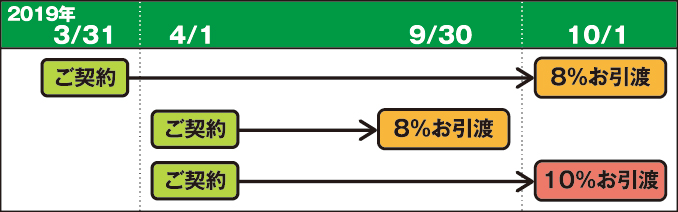 ・「請負契約」が2019年3月31日までに成立していれば、引き渡しが2019年10月1日以降になっても、消費税は8%のまま