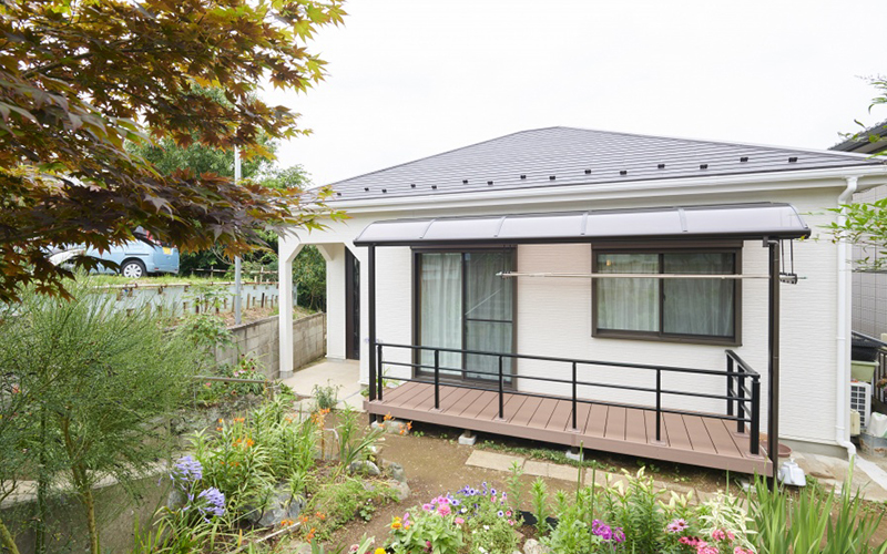ポラスが手がけたこちらの実例は、家族が減ったため2階を撤去して平屋にリフォームした例です。夫婦それぞれに個室を設け、お互い自分の趣味に没頭できる環境も整えました。断熱性の向上もかなって効率よく冷暖房が行えるようになり、温度差が少なく健康的に過ごせる家になりました。