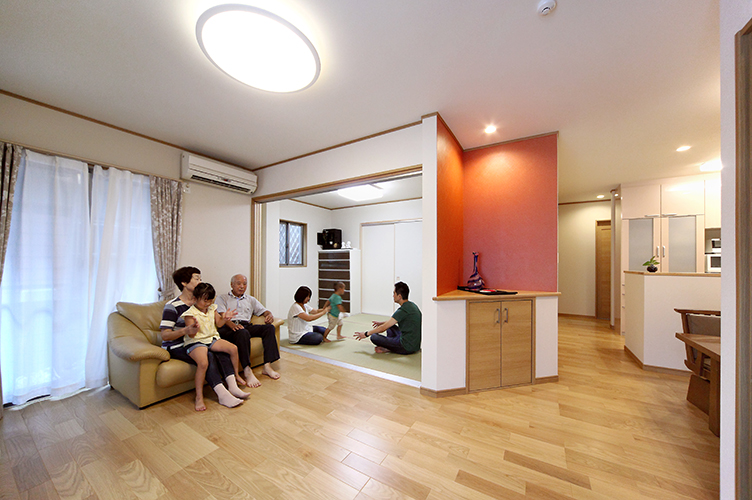 独立した子どもたちが帰省したり、新しい家族を連れて集まるようになると、広く快適なリビングや開放的なキッチンが大活躍することでしょう。孫たちは伸び伸び遊ぶことができるので、「遊びに行きたい」という気持ちを起こさせます。また、スッキリしたリビングがあれば、友人知人を気軽に招けるようになり、もてなしや交流の楽しみも広がりそう。対面型のキッチンなら、料理しながらゲストとのおしゃべりを楽しめ、料理の受け渡しもスムーズ。ホームパーティも盛り上がることでしょう。
