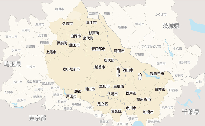 例えばポラスでは、拠点から車で1時間以内で駆けつけられる範囲に施工エリアを絞っています。越谷、草加、春日部、さいたま、川口、松戸、柏、流山、足立の方にとっては、心強い地域密着のリフォーム会社であるといえます。