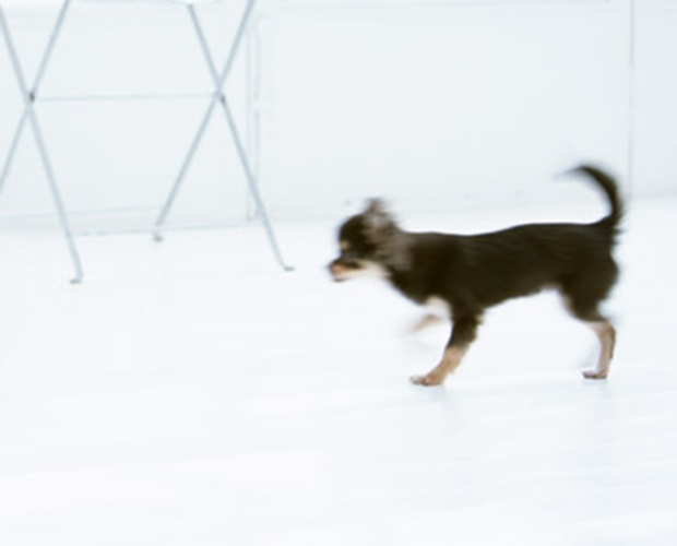 ペットのいる住まいでは、どんな床材が望ましいでしょうか。犬は、固く滑りやすい床材を嫌います。足腰への負担が大きく、不調や病気の原因になることも。柔らかく滑りにくい床材を選べば負担を少なくできます。しかし、たとえばスギやキリのような柔らかい無垢フローリングは、爪の跡が付きやすかったり、おもちゃを振り回したりしたときにキズ付きやすいというデメリットが。ある程度の丈夫さがある床材や、キズが目立ちにくい床材を選んでおけば、気になりにくいでしょう。ペットがトイレに失敗したり吐いたりすることを考慮すると、汚れに強い、汚れを拭き取りやすいといった機能性も求められます。合板フローリングはアンモニアに弱いので、粗相されると黒ずみが取れず、やっかいです。その点、「ペット用フローリング」や「ペット用クッションフロア」なら安心でしょう。