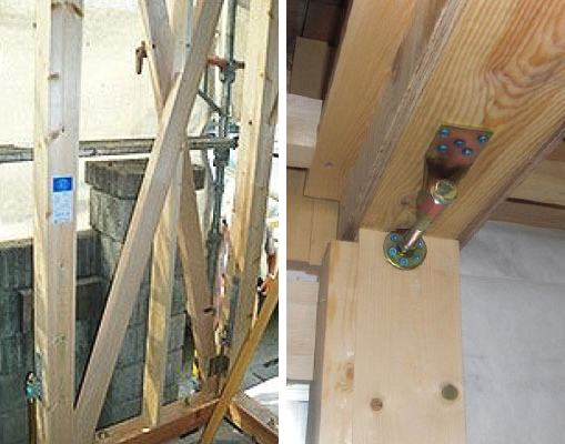 では、耐震リフォームとはどんなことをするのでしょうか。耐震補強工事を行う部位は、屋根、結合部、壁、基礎の4つがあります。屋根は、日本瓦などの重い屋根材を軽い屋根材に交換して、建物の横揺れに対する負担を減らします。結合部は、地震のときに弱点となりやすい部位です。土台と柱、梁と柱などを耐震金物でつなぎ合わせ、補強します。壁は、耐力壁(建物が地震力や風圧力などに耐えるために必要な役割を担う壁)をバランスよく配置することで建物が強くなります。そこで、足りない部分に壁を新設したり、既存の壁を合板でなどで補強したりします。また、古い住宅の基礎には、鉄筋が入っていない場合があるので、増し打ちなどで補強します。経年によるひび割れも補強します。これらのうち、現状を踏まえて必要な工事を行うのが耐震リフォームの基本的なやり方です。
