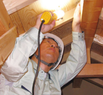 簡易診断では、図面を見て耐力壁(建物が地震力や風圧力などに耐えるために必要な役割を担う壁)がバランスよく、十分に配置されているかといったことを読み取り、大まかな耐震性能を判断します。一般診断法は、図面のチェックとともに現地調査を行い、目視による確認を行います。所要時間は3時間程度が一般的。例えばポラスでは、建築士が床下、壁、柱、天井裏、屋根まで、150項目にも及ぶ詳細な項目に基づき調査し、(財)日本建築防災協会「木造住宅の耐震診断と補強方法」に基づき、診断を行います。壁や天井の一部を剥がし内部構造まで確認する「精密診断法」は、丸1日程度を要する大掛かりな調査になります。