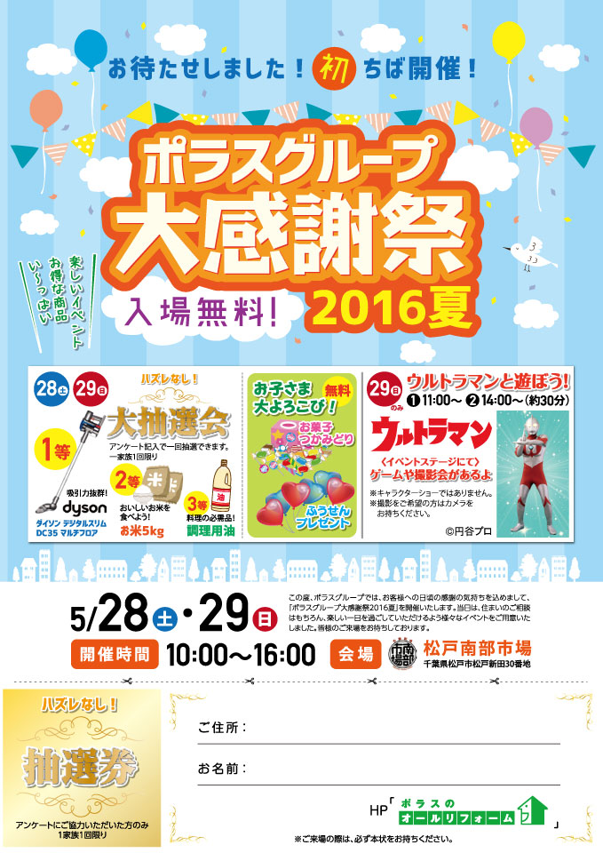 この度ポラスグループでは、お客様への日頃の感謝の気持ちを込めまして「大感謝祭2016夏」を開催いたします。