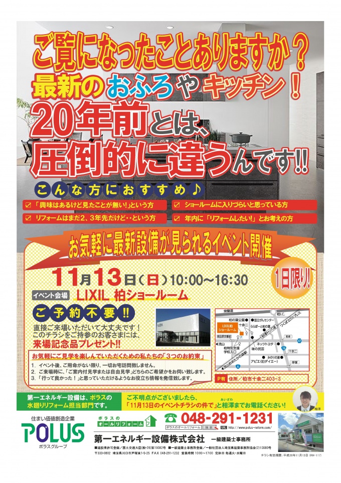 11月13日(日) LIXIL柏ショールームでイベントを開催致します!!