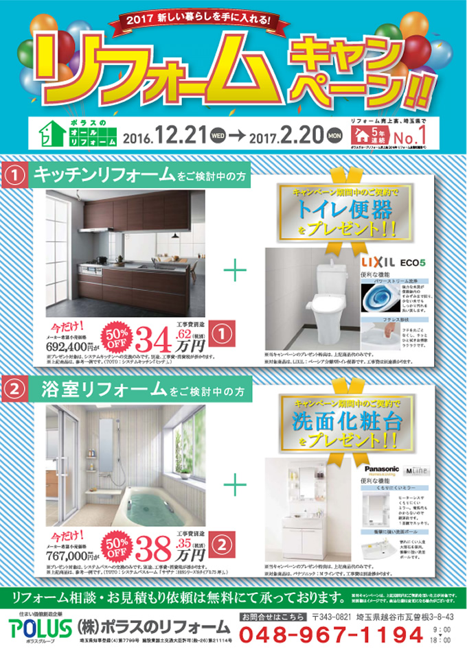 ポラスのオールリフォームでは、お得なリフォームキャンペーンを開催中です。
