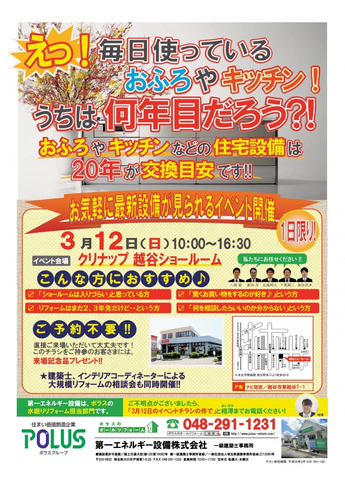 3月12日(日) クリナップ 越谷ショールームでイベントを開催致します!!