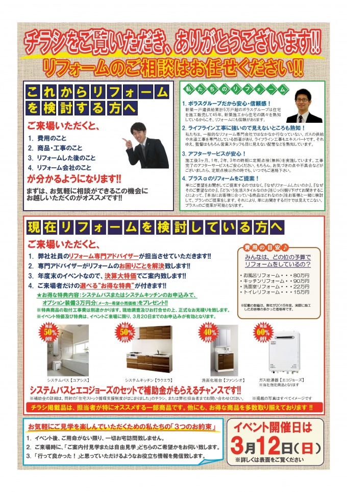 また、建築士、インテリアコーディネーターによる大規模リフォームの相談会も同時開催!!