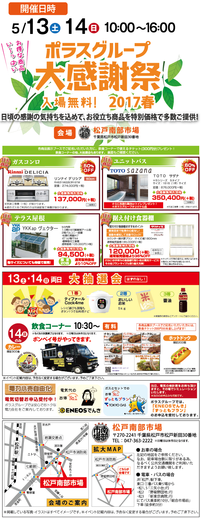 この度ポラスグループでは、お客様への日頃の感謝の気持ちを込めまして「大感謝祭2017春」を開催いたします。