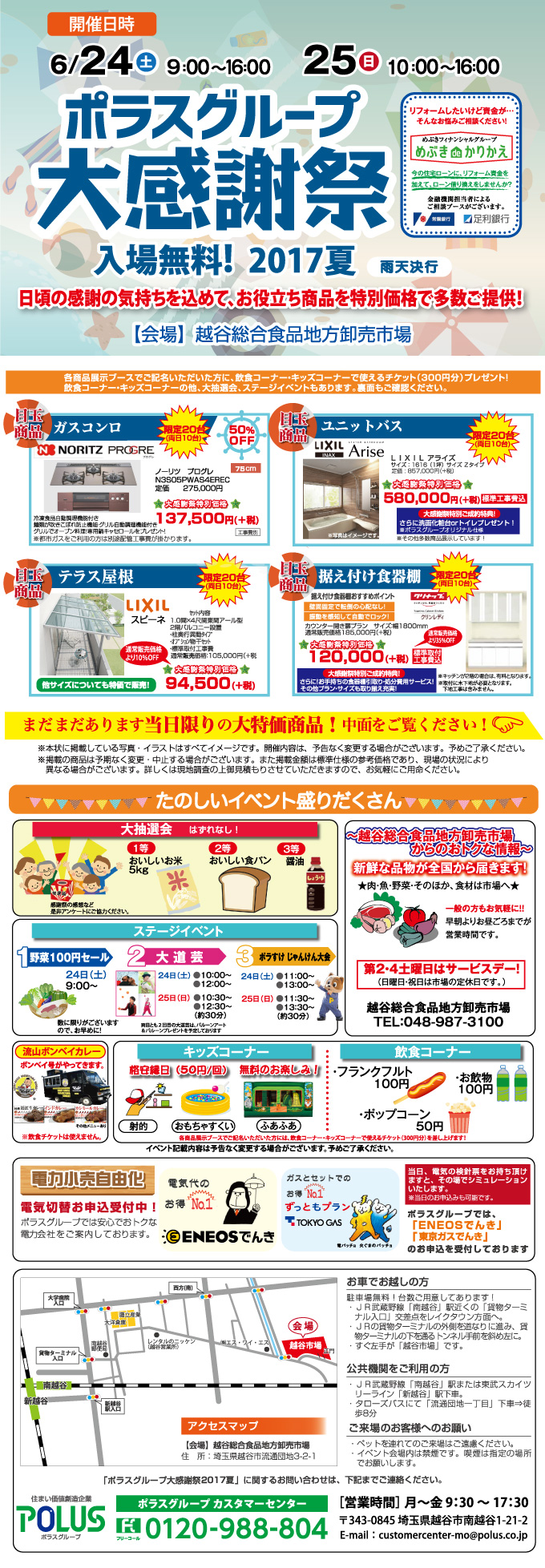 毎回ご好評をいただいております「ポラスグループ大感謝祭」ですが、今年の第二回目は、越谷で開催いたします。