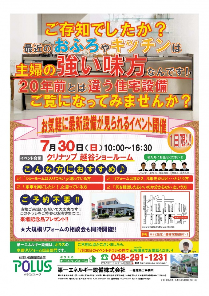 7月30日(日) LIXIL越谷ショールームでイベントを開催致します!!