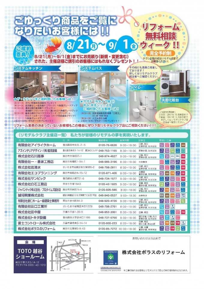 8月26日(土)・27日(日)TOTO越谷ショールームで