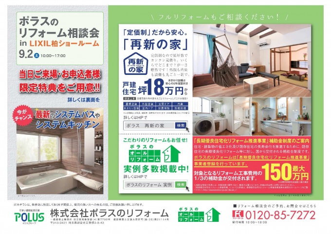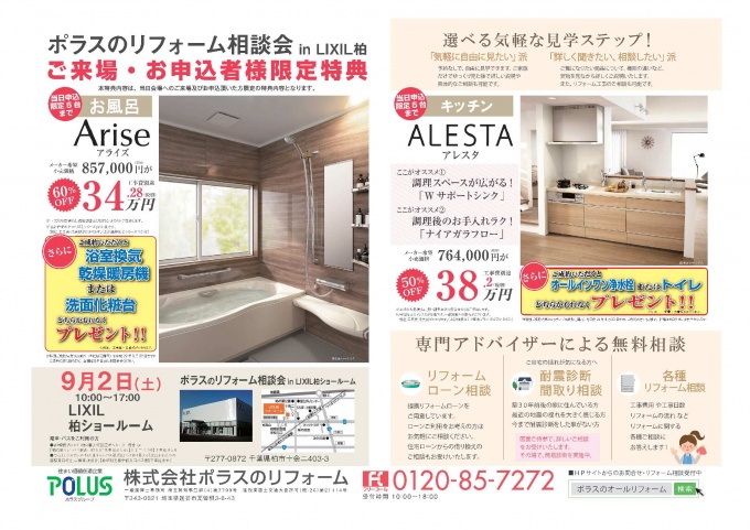 9月2日(土)LIXIL柏ショールームでリフォーム相談会を開催します。