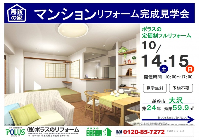 埼玉県越谷市大沢にて、築24年のマンションのリフォーム完成現場見学会を開催致します!!