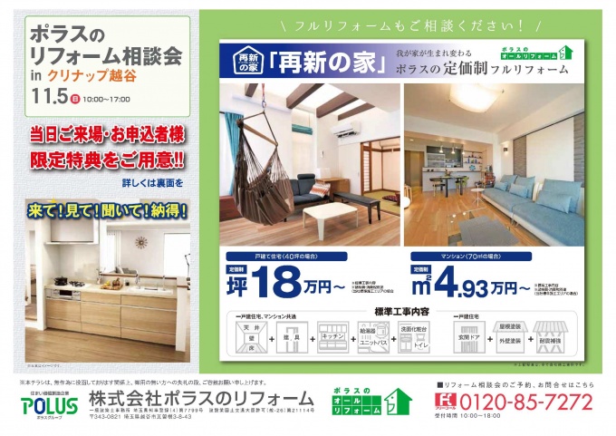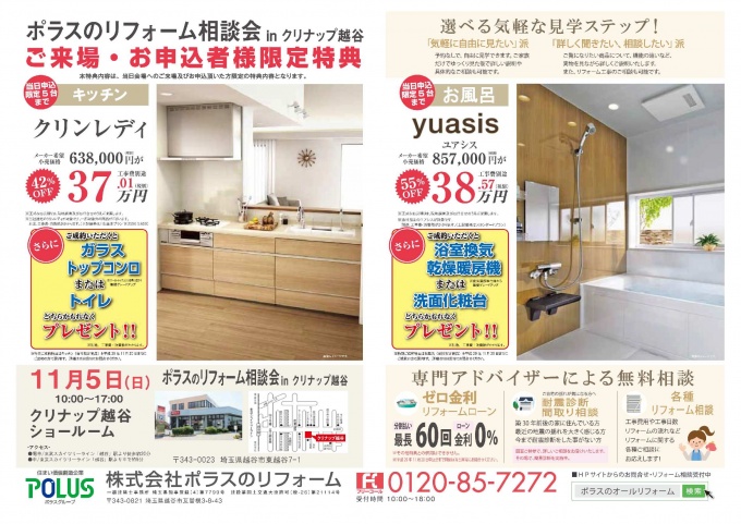 平成29年11月5日(日)クリナップ越谷ショールームでリフォーム相談会を開催致します。