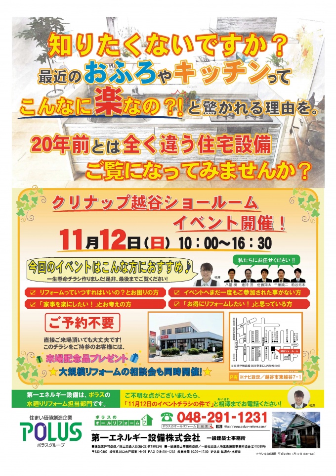 11月12日(日) クリナップ越谷ショールームでイベントを開催致します!!