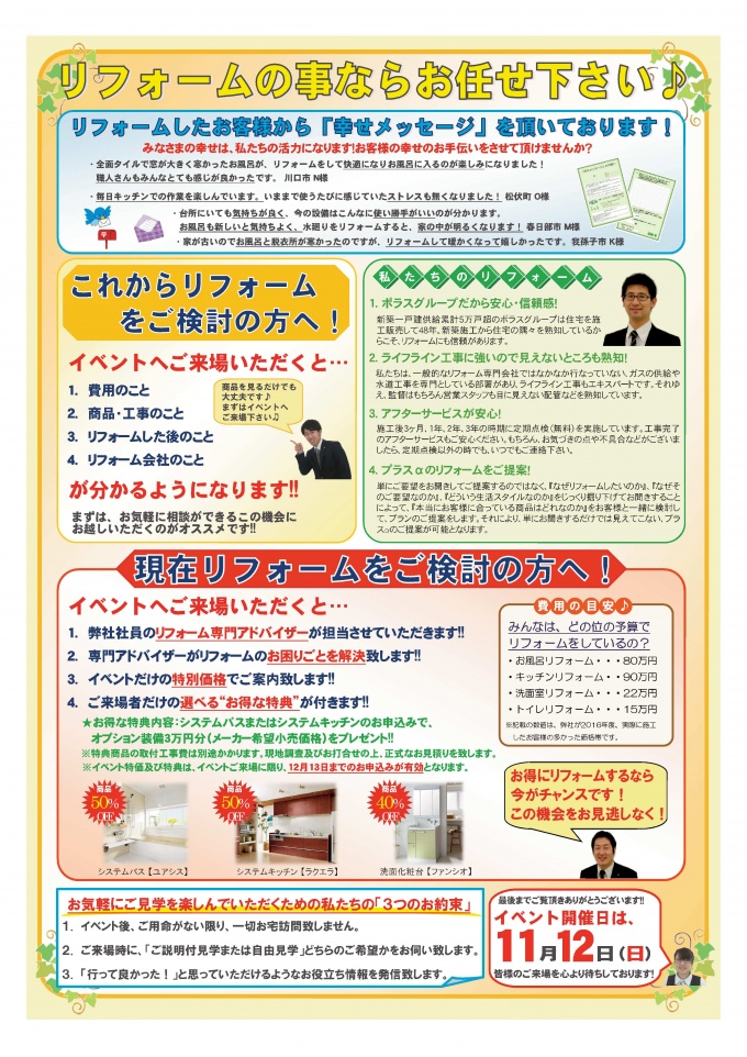 また、大規模リフォームの相談会も同時開催!!