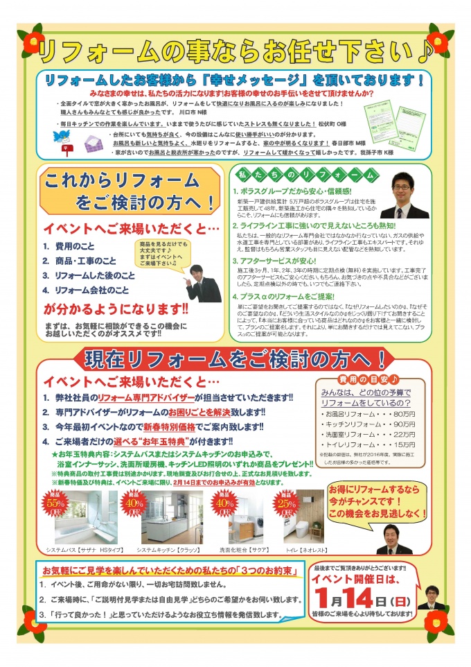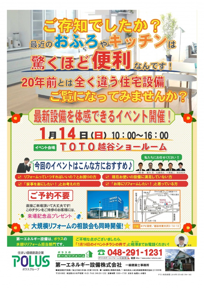 1月14日(日) TOTO越谷ショールームでイベントを開催致します!!