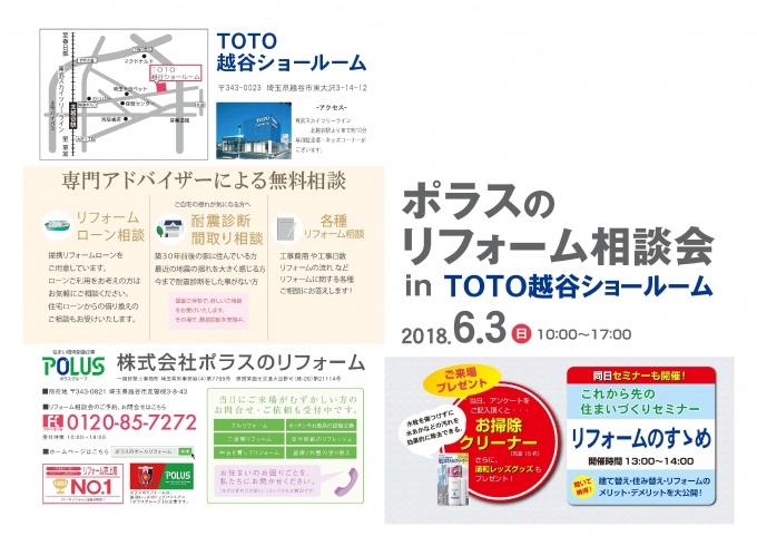 2018年6月3日(日)TOTO越谷ショールームにてリフォーム相談会を開催致します。