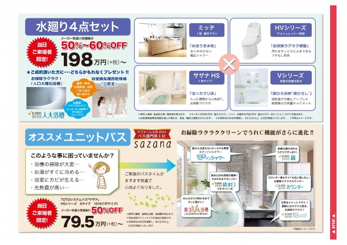水廻りのお手入れやリフォームのご相談の方は是非ご来場下さい!