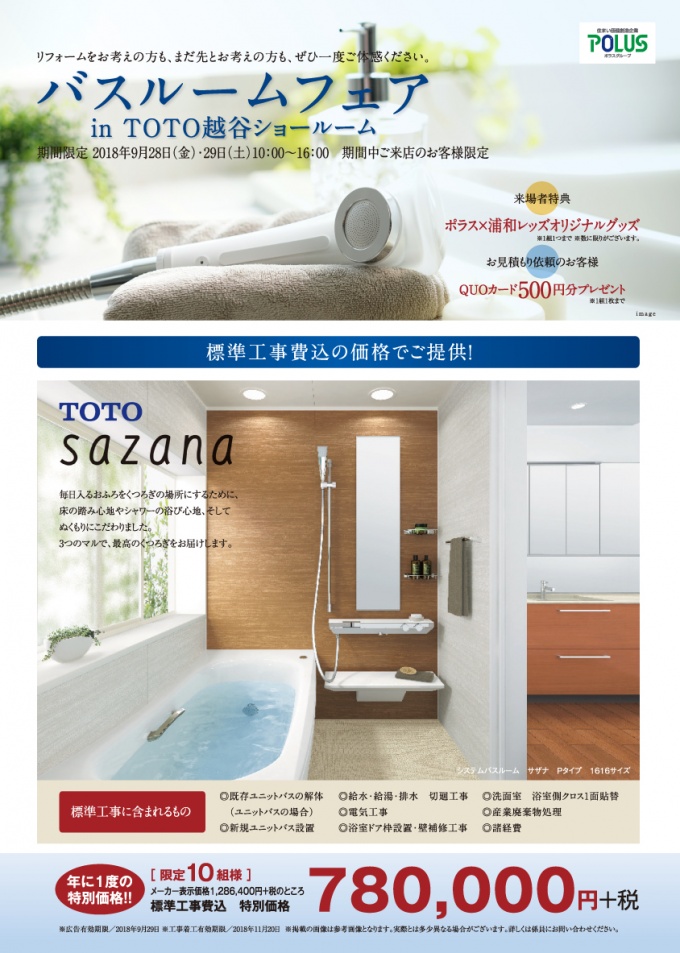 TOTO越谷ショールームにてバスルームフェア を開催いたします!