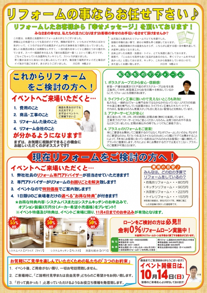 また、大規模リフォームの相談会も同時開催!!
