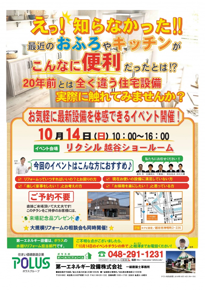 10月14日(日) LIXIL越谷ショールームで最新設備が体感できるイベントを開催致します!