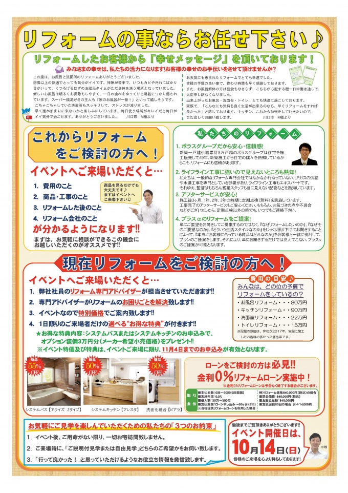 1.イベント後、ご用命がない限り、一切お宅訪問いたしません。