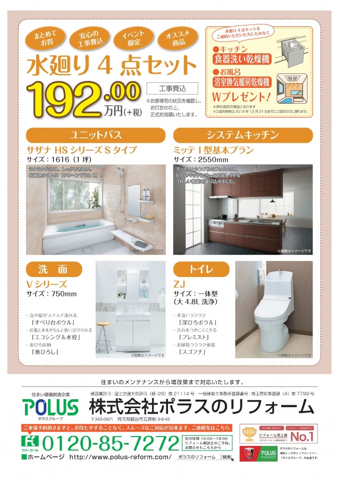 水廻りのお手入れやリフォームのご相談の方は是非ご来場下さい!