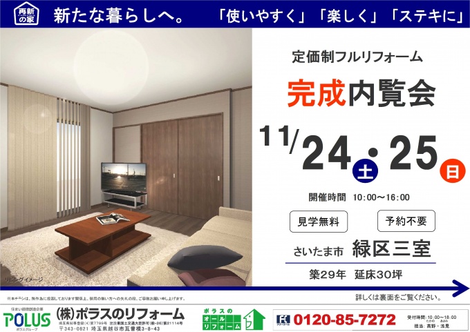この機会にポラスのリフォームの完成施工現場を是非ご覧下さい!