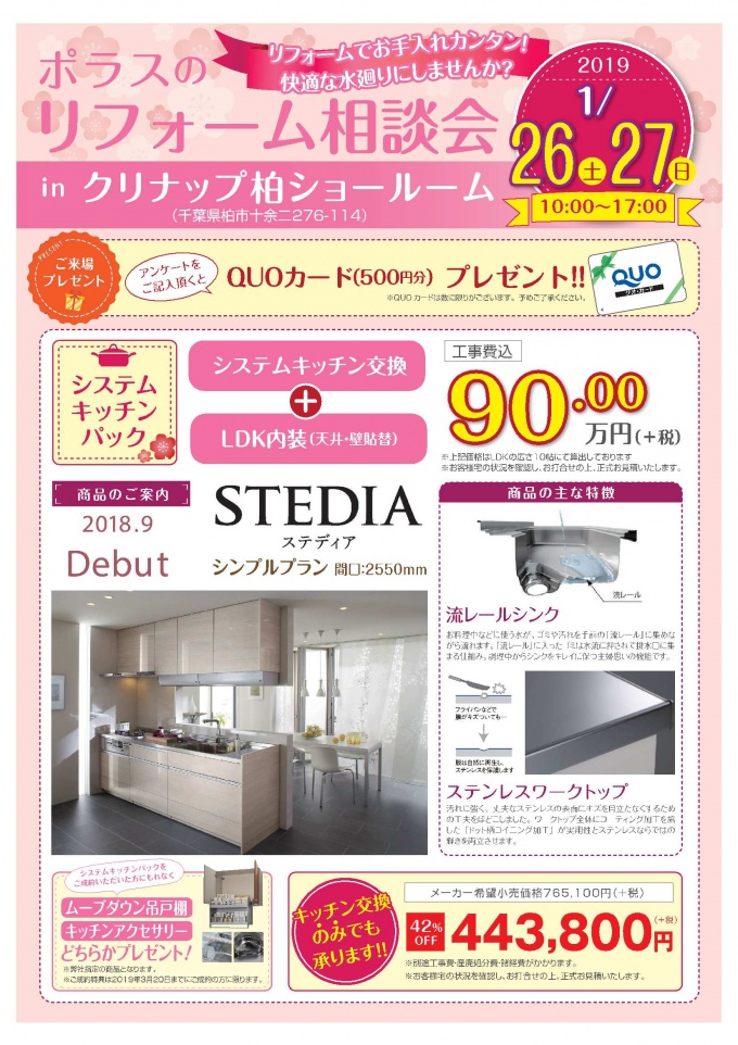 クリナップ柏ショールームにてリフォーム相談会を開催致します。