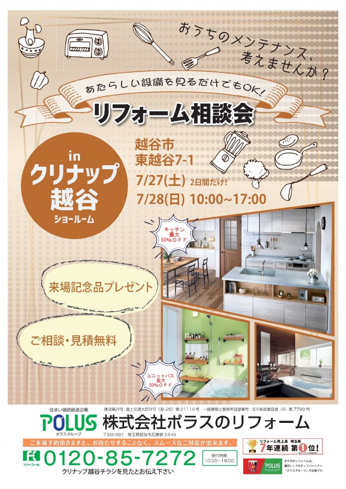 クリナップ越谷ショールームにてリフォームの相談会を開催致します。