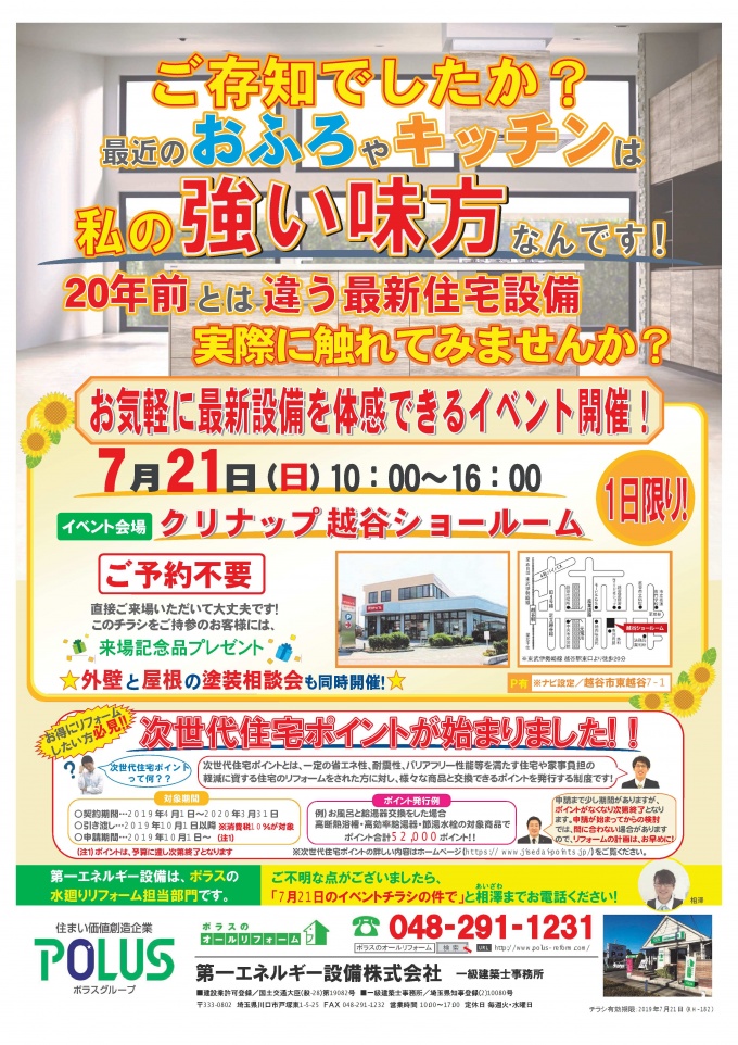 7月21日(日) クリナップ越谷ショールームで最新設備が体感できるイベントを開催致します!