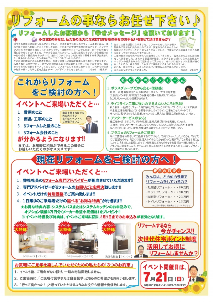 1.イベント後、ご用命がない限り、一切お宅訪問いたしません。