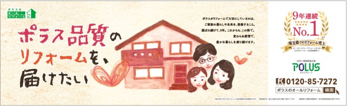 ポラスグループは、おかげさまで9年連続で埼玉県でのリフォーム売上高1位を獲得することができました。(2020年リフォーム産業新聞社調べ)