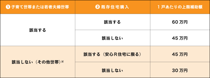 ・1つの住宅について、「リフォーム」の補助金の補助上限の引き上げを受けた工事発注者は、当該住宅と別の住宅であったとしても、再度「注文住宅の新築」、「新築分譲住宅の購入」の補助金の交付を受けることはできません。