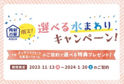 キッチンリフォーム・お風呂リフォームのご契約で選べる特典をプレゼントいたします!