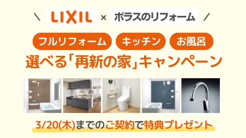 フルリフォーム、キッチン、お風呂のご契約で選べる特典プレゼント!