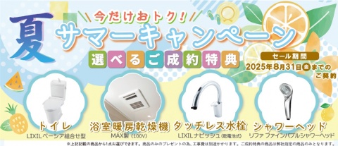 今年も皆様の日々の暮らしを応援するために、 第一エネルギー設備ではサマーキャンペーンを開催いたします! お得にリフォーム出来るチャンスです。