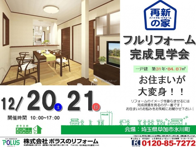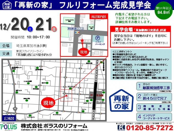 お問い合わせは0120-85-7272(ポラスのリフォーム越谷店:営業推進係 伊藤/横溝)までご連絡下さい。