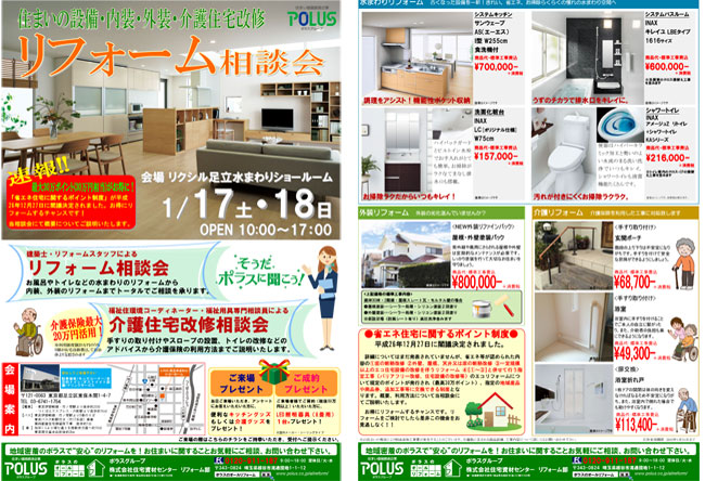 最新の設備機器を実際に見ながら今年のリフォーム計画を立てませんか?経験豊富なリフォームスタッフがお手伝いいたします。