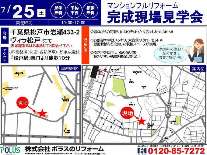 お問い合わせは0120-85-7272(ポラスのリフォーム越谷店:営業推進係 伊藤/横溝)までご連絡下さい。