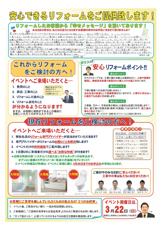 1.イベント後、ご用命がない限り、一切お宅訪問いたしません。